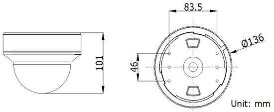 700TVL 1/3" CCD超宽动态ICR日夜型半球摄像机 |