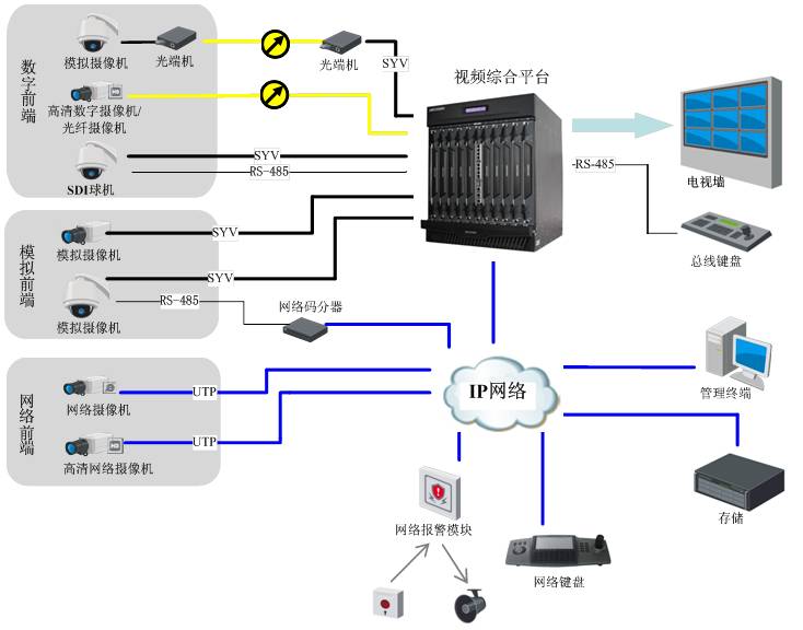 - 支持模拟、网络、数字视频信号接入和切换输出
